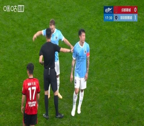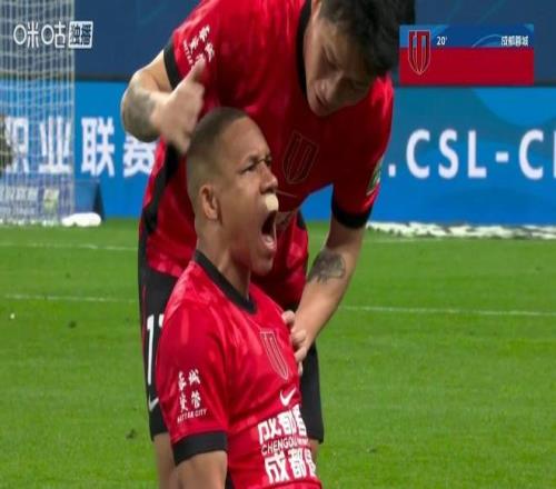 這張紅牌打破了兩隊場上人數的平衡,多打一人的成都蓉城很快便創造出機會。第20分鐘,成都蓉城將球傳入禁區,費利佩將球回做,韋林頓果斷施射攻入加盟首球,幫助球隊將比分扳為1-1。