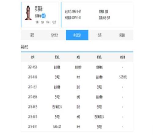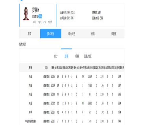 該球員95年10月出生,現(xiàn)今30歲,身高1米70,身價(jià)180萬(wàn)歐,巴西籍,目前效力于成都蓉城俱樂(lè)部。