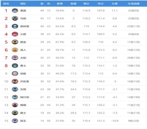今日比賽后火箭、森林狼排名互換,其他西部球隊排名不變。