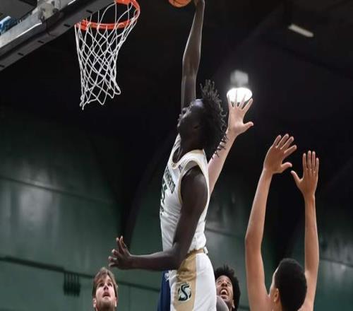 阿科爾-馬溫今年25歲,身高2米08,臂展2米21,職業生涯先后效力于澳大利亞聯賽、格魯吉亞超級聯賽、斯洛伐克聯賽。25-26賽季,馬溫效力于斯洛伐克聯賽,代表球隊出戰23場比賽,場均9分4.3籃板1.2助攻,代表球隊出戰9場冠軍聯賽,場均7.9分4.2籃板。從技術特點來看,馬溫具備出色的身高和臂展優勢,內線防守和籃板保護能力突出,還具備一定的中距離投籃能力,籃下低位背身單打能力也很不錯,進攻手段非常豐富,是一名能里能外的大外援,可以說是低配版的洛夫頓和亞布塞萊。