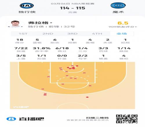 獨行俠狀元秀弗拉格 登場25.8分鐘