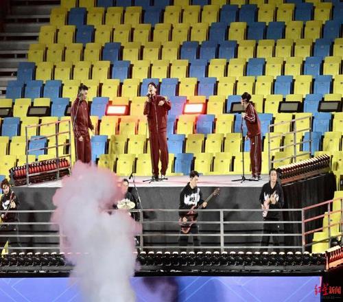 而在今晚的中超開幕式上,成都世運會開幕式主題曲《萬千》演唱者、《原創新聲》獲獎歌手韓丙臣與狄迪,以及由鐵桿球迷組成的擴散樂隊帶來全新改編的搖滾版中超聯賽主題曲《超越》?!俺健钡挠職馀c“一起登場”的決心在賽場點燃,融入成都城市文化與溫度,為中國足球吶喊助威。