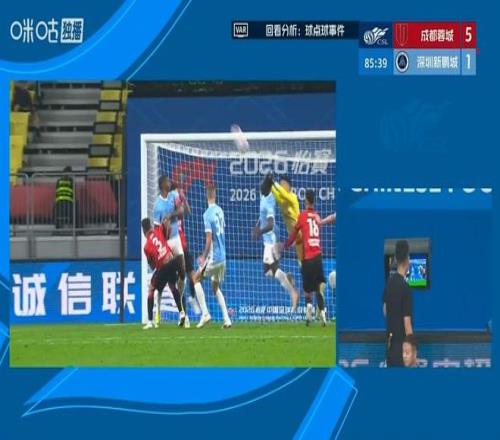 事實(shí)上深圳新鵬城也有機(jī)會(huì)再次破門。第85分鐘時(shí)劉殿座在門前撲球解圍時(shí)沒有擊中皮球,而是雙手擊打在對(duì)手前鋒的頭上,VAR介入后認(rèn)定沒有點(diǎn)球。