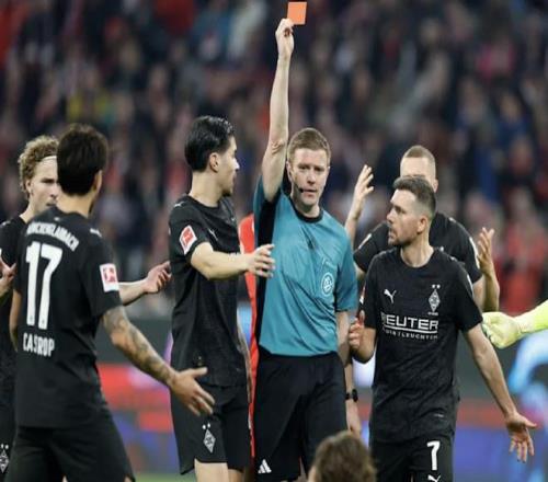 北京時間3月7日,德甲第25輪,拜仁慕尼黑4-1門興格拉德巴赫。比賽第55分鐘,主裁判羅伯特-施羅德在門興球員賴茨與拜仁前鋒雅克松的一次對抗后,將賴茨直接罰下。