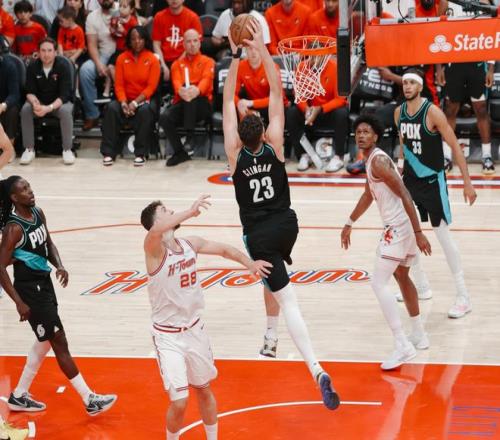 但開拓者在霍勒迪帶領下,很快就反超火箭,亨德森和霍勒迪內突外投,謝潑德和申京都是對面針對的“軟柿子”。中段謝潑德反擊上籃+芬尼史密斯三分球穩定一下節奏,霍勒迪上籃+弧頂三分,杜蘭特又連續打鐵,羅威暴扣,阿門也被霍勒迪點名。杜蘭特越打越上頭,失誤增加,但非要打進一個不行。三節打完,火箭77-82落后。決戰第四節,塞布爾和格蘭特繼續上分,申京對抗打成2+1后,弧頂三分再中,此后阿門依靠單打和反擊暴扣,帶隊反超比分。此后謝潑德飛身上籃,杜蘭特后仰跳投+謝潑德續上三分球,火箭拉開分差。