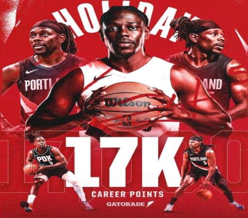 開拓者后場核心霍勒迪達成生涯常規賽17000分里程碑。