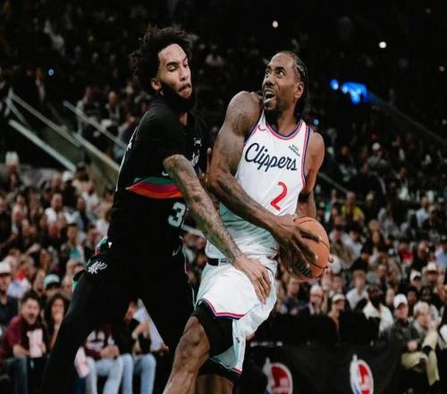 第一節(jié)比賽末段,快船率先占據(jù)主動權(quán),依靠米勒和馬瑟林的輪番沖擊籃下,取得微弱領(lǐng)先優(yōu)勢。首節(jié)比賽結(jié)束,快船32-25領(lǐng)先馬刺隊7分。次節(jié)比賽開始,科內(nèi)特教科書般的老大爺勾手,幫助馬刺隊先下一城,倫納德彎道超車,直搗黃龍?zhí)袈鋬煞郑ㄋ範柸志€外接球就投,一擊命中,倫納德侵略性十足,霸王龍三大步上籃也擦板得分,文班亞馬踏雪無痕搶到進攻籃板,飛身補籃得手,小卡又一個搶斷快攻,反擊一條龍上籃命中,文班自信三分開火一箭穿心,馬刺在第二節(jié)后半段陷入得分荒,快船趁機全民皆兵,繼續(xù)擴大領(lǐng)先優(yōu)勢到兩位數(shù)。