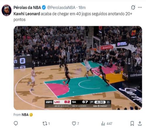 1.倫納德連續40場比賽20+刷新個人生涯新高;