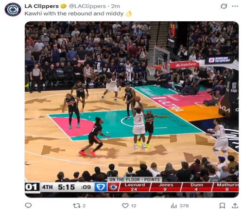 此役的快船依舊艱難,加蘭、科林斯、尼德豪澤、波格丹等核心輪換都無法登場,倫納德是唯一被倚重的核心,好在小瓊斯首節命中2個三分球幫助小卡分憂,首節倫納德只有3中1,三分2中0拿到4分3籃板1助攻。