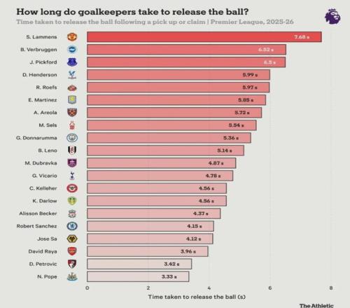 The Athletic統計,本賽季英超比賽中,只有波普和佩特洛維奇兩名門將在拿球后發球的速度快于拉亞。